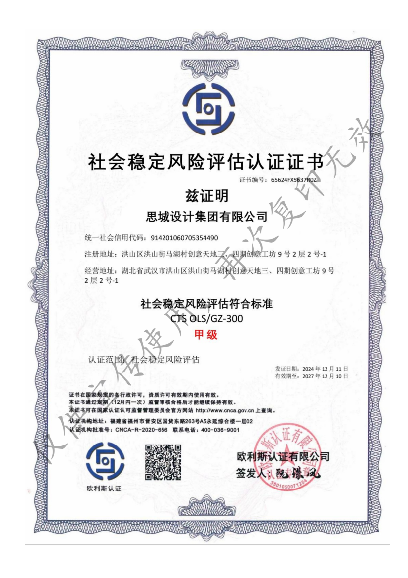 - 社會(huì)穩(wěn)定風(fēng)險(xiǎn)評(píng)估認(rèn)證證書(shū)