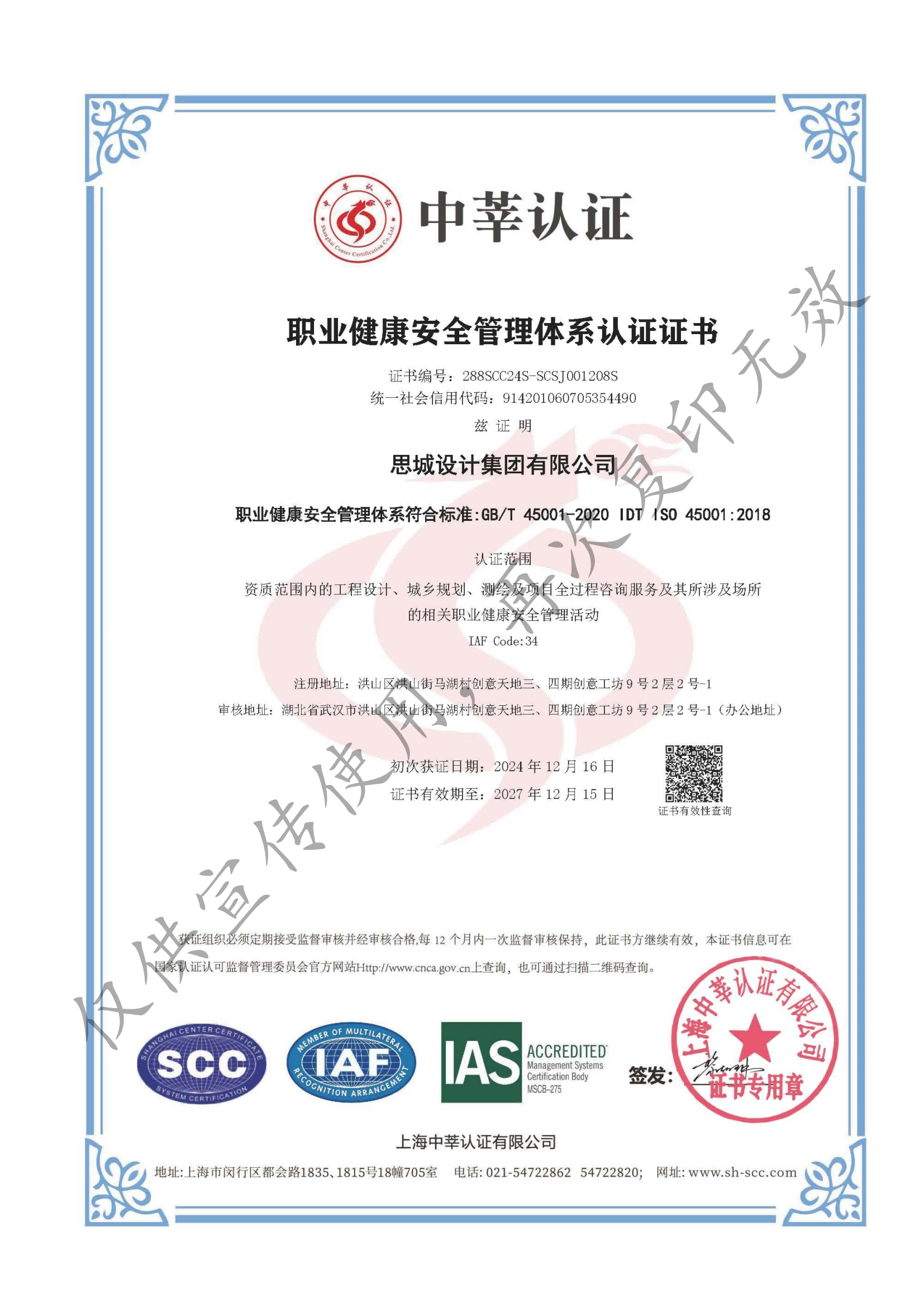- 職業(yè)健康安全管理體系認(rèn)證證書(shū)